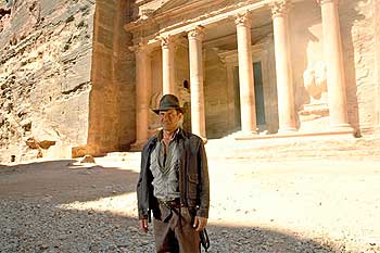 a Indiana Jones, totalmente caracterizado con su sombrero y su látigo,