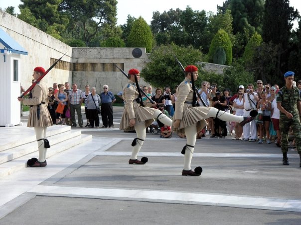 El edificio servía originalmente como el Palacio de la monarquía griega, hasta 1924, cuando la monarquía fue suprimida por referendo. Durante 2 anos, sirvió como hospital y museo. En septiembre 1926, el gobierno decidió su transformación como la sede del parlamento. Allí cada hora se puede ver el cambio de guardia real "Evzones" con sus originales ropas, con falda de plieges, tantos como años de ocupación turca. Algo payasos, pero bonito de ver.