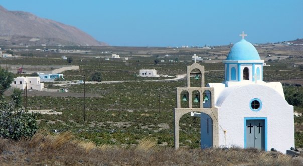Santorini es, en esencia, lo que queda de una enorme explosión volcánica que destruyó los primeros asentamientos existentes, haciendo desaparecer gran parte del territorio de la antigua isla y provocando la creación de la caldera geológica actual. Su espectacular belleza, junto con una animada vida nocturna, la han convertido en uno de los principales destinos turísticos de Europa. Sus construcciones tienen un aspecto oriental, con casas blancas y marcos de ventanas y puertas en azul, como se pueden encontrar en las costas de Marruecos o Túnez. Por otra parte, también se han formulado reproches contra el carácter desordenado y excesivo de su desarrollo urbanístico reciente.
