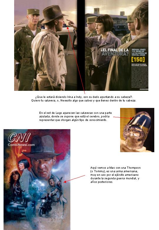 En el set de lego hemos visto unas calaveras con una parte azulada en su interior, siempre me pareció que pudiera representar que pueden otorgar algún tipo de conocimiento al utilizarlas. Pero claro habría que utilizarlas antes. Estos entre otros eran otros datos que me llevaban a mi teoría de que en el almacén los rusos buscan el arca y las calaveras son un medio de localizarla. Pero es una teoría claro.