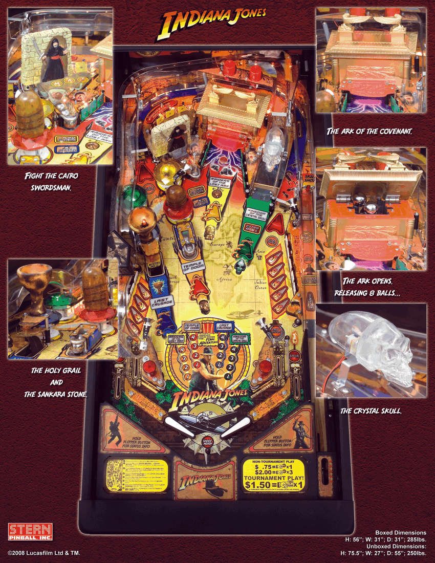 Stern Pinball, tras años sin una máquina de estas caracteristicas sobre Indiana Jones, lanza al mercado una inspirada en las 4 películas de la saga. .La última fué para "La Última Cruzada" con una gran acogida y todavía visible en algunos bares o salas recreativas. Podeis realizar la reserva en la propia web, comprar recambios e incluso un servicio de mantenimiento. O comprar otras máquinas sobre películas, series y dibujos. La contrapartida es el transporte y precio.... ¿alguien se atreve?