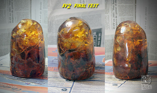 Tras realizar los moldes y demás fases preparatorias (me queda retocar dos versiones aparte de las tres principales) he podido empezar a sacar copias y hacer pruebas para la versión translucida
