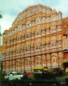 delicadamente talladas en arenisca rosa. El Hawa Mahal