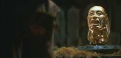 A la derecha, el mismo Ídolo sujetado por Belloq