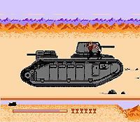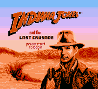 na variación de la ultima película de Indy es esta, a pesar de tener ya un juego basado en la película, de la mano de UsGold. La compañía Taito lanzo al mercado su propia versión del juego. Digamos que no llego a ser muy importante, pero podemos ver que en ella tenemos bastante mas variedad de escenas. Bajo estas líneas, podéis comprobar como dos de las pantallas que aparecen son de partes de la película que no están reflejadas en los otros juegos, tales así como el barco donde tendremos que recuperar por segunda vez la cruz de coronado, o la pelea sobre el tanque, la cual debemos terminar rápido si no queremos caernos al vacío. Pantallas de carreras, acción y variantes del típico Tetris nos esperan tras colocar el cartucho y encender nuestra consola.