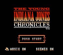 quí tenemos el primer juego del joven Indiana Jones, se trata de una adaptación de varios de los episodios de esta magnifica serie. Se trata de un juego de plataformas donde tendremos que sortear muchos peligros. El análisis de la parte gráfica es simple, escenarios pobres y un protagonista de escaso tamaño y detalle, enemigos repetitivos y de igual calidad. En el apartado de sonido no se puede destacar nada, ya que se limita a repetir una musica que acaba cansando. Gran dificultad para todos aquellos que no juegan demasiado, debido a que al perder una vida, volvemos a empezar desde el principio de la pantalla, por lo que hay que pasar cada una de ellas sin que nos eliminen. Poca adicción y originalidad en el. Cabe destacar la introducción de cada una de las misiones, volveremos a ver a Indy, ya muy mayor, como en la serie de telvisión. Un título curioso pero nada destacable para su época.